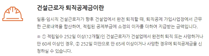 6. 이 제도의 대상자는 1년 미만의 근로계약으로 일하는 일용직 및 임시직 분들이에요. 그리고 국적, 나이, 소속, 직종 전부 상관없기 때문에 실제로 건설현장에서 일하신다면 거의 대부분 해당된다고 보셔도 무방해요. 특히 하루 단위로 근무하시는 분들에게는 이 제도가 큰 도움이 됩니다.