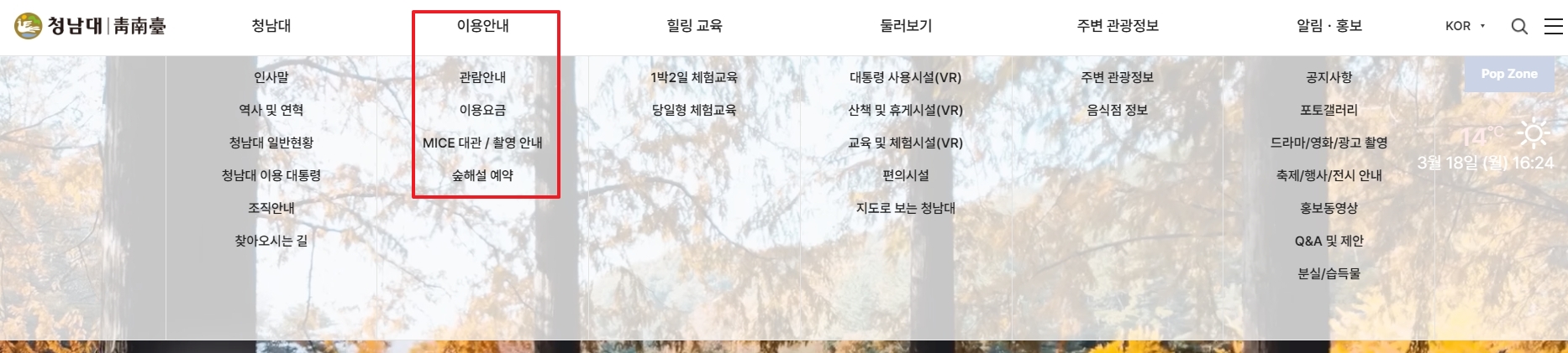 1. 먼저 청남대 공식 홈페이지에 접속하셔야 해요. 이곳은 충북 청주에 위치한 전직 대통령들의 휴양지로 사용되던 청남대의 다양한 정보를 제공하고 있습니다. 홈페이지에선 관람 안내뿐만 아니라 주변 관광지, 음식점, 숙소 정보까지 확인할 수 있어서 방문 전 꼭 한 번 들러보시는 걸 추천드립니다.