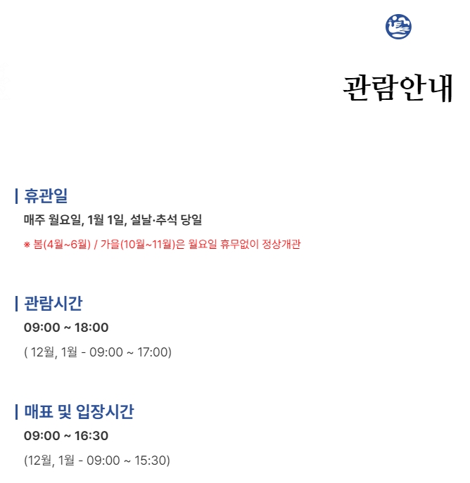 4. 방문 전 필수 체크사항 중 하나가 바로 운영 시간이에요. 월요일이나 명절 당일은 쉬는 날이니 피해서 예약하셔야 해요. 특히 봄이나 가을에는 운영 일정이 조금 달라질 수 있어서 홈페이지에서 그때그때 확인하는 게 좋아요.