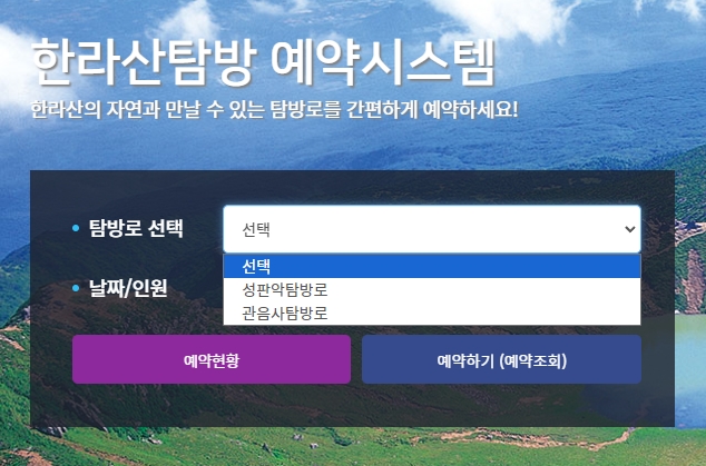 한라산 탐방로 예약 시스템 (visithalla.jeju.go.kr)