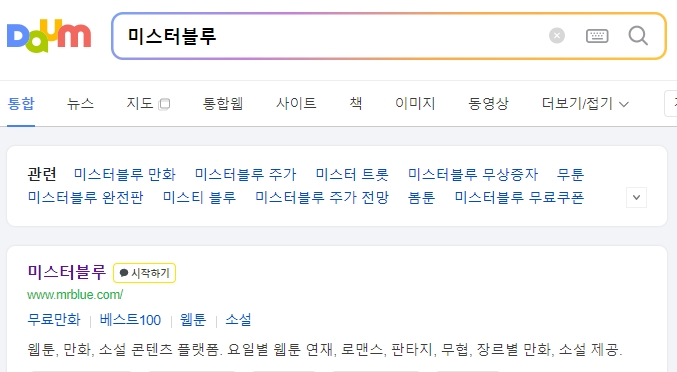 5. 이번에는 미스터블루 웹사이트로 이동해볼게요. 이곳도 무협 만화 좋아하시는 분들이 자주 찾는 플랫폼 중 하나로, 황성 작가의 다양한 작품들이 잘 정리되어 있어요.