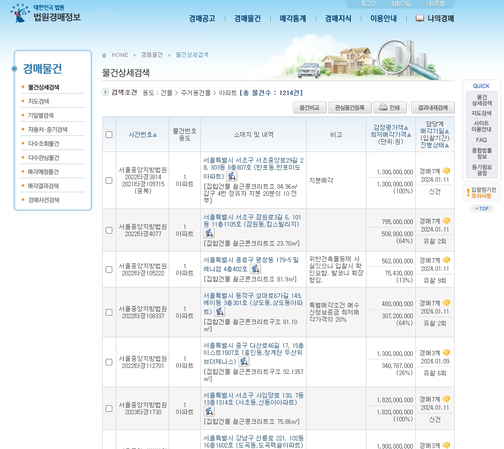 아파트 경매 사이트 (www.courtauction.go.kr)