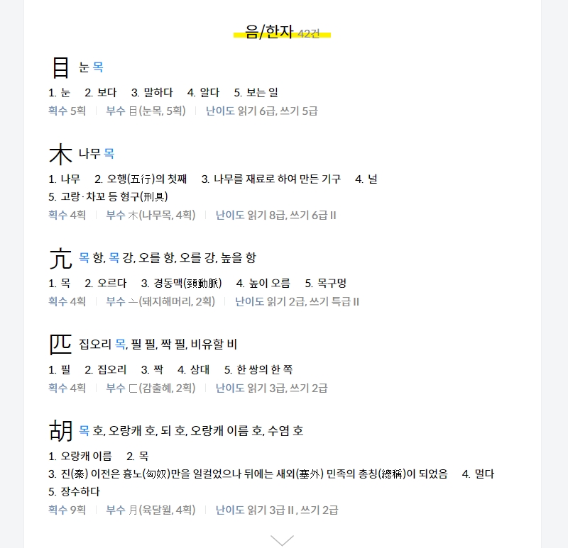 8. 원하는 한자를 클릭하면 그 한자의 뜻과 유래, 그리고 실제 사용 예시까지 확인할 수 있어서 공부용으로도 딱이에요. 저도 종종 모르는 한자가 나오면 이렇게 검색해서 의미를 확인하곤 합니다.