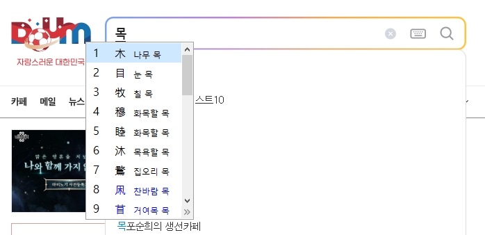 5. 다음 방법으로는 인터넷을 활용하는 방법이 있는데요. 포털 사이트에서 다음 한자 사전을 검색해서 들어가 보세요. 별도의 프로그램 설치 없이 바로 이용할 수 있어서 정말 간편합니다.