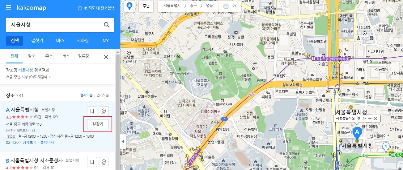 5. 혹시 특정 버스를 타지 않더라도 출발지와 도착지를 입력해서 전체 경로를 확인하고 싶다면, 길찾기 기능을 활용하면 됩니다. 예를 들어 서울시청에서 경복궁까지 가야 할 때, 출발지와 도착지만 입력하면 다양한 경로가 추천돼요.