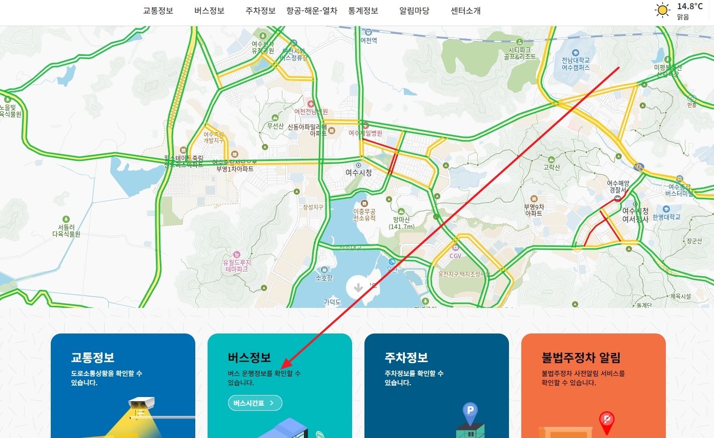 1. 먼저 여수시 교통정보센터 홈페이지에 접속해 주세요. 여기는 여수시의 실시간 교통 상황부터 버스 노선, 운행 정보까지 한눈에 확인할 수 있는 곳이에요. 복잡한 길찾기나 버스 시간을 일일이 찾아볼 필요 없이, 이 사이트 하나면 여수 시내 어디든 편하게 이동할 수 있습니다.