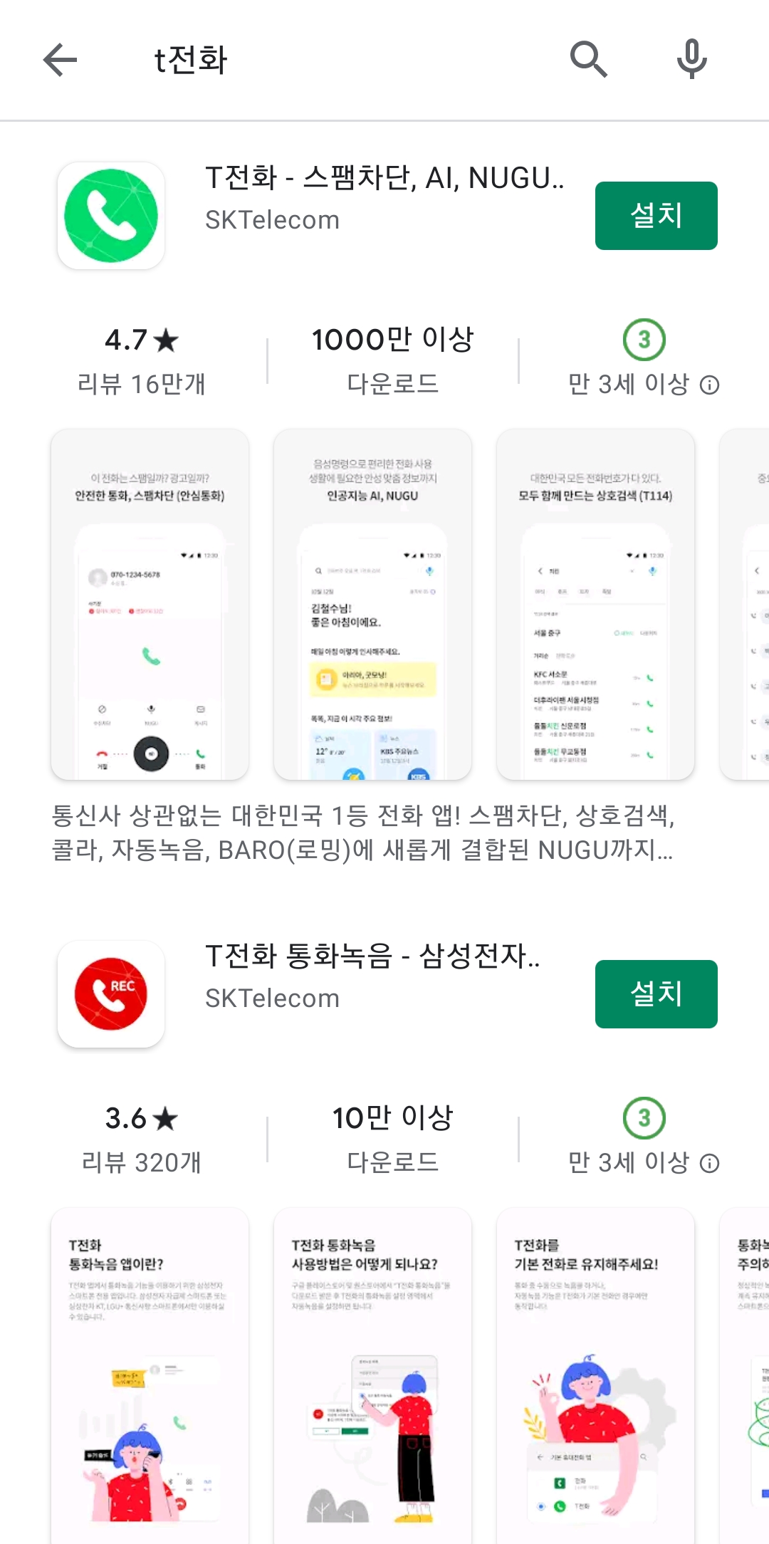 또 다른 추천하는 자동 통화 녹음 어플은 T전화입니다. T전화를 기본 전화 앱으로 설정하면 자동 통화 녹음을 쉽게 사용할 수 있습니다. SKT 사용자가 아닌 경우에도 Play 스토어에서 다운로드하여 사용할 수 있습니다.