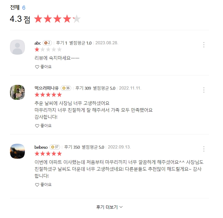 6. 마지막으로 후기 체크는 필수입니다. 좋은 후기만 보지 말고, 불만족 후기도 꼼꼼히 읽어보세요. 불만족 후기를 보면 어떤 부분이 약점인지 미리 알 수 있어서 더 현명한 선택을 할 수 있습니다. 저도 항상 후기 꼼꼼히 보고 결정하는 편인데, 덕분에 크게 불편한 일 없이 이사를 마칠 수 있었어요.