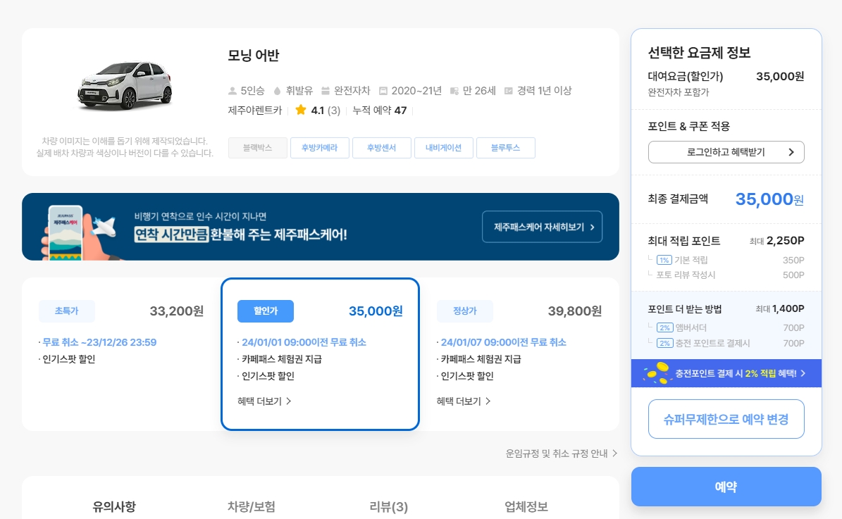 제주도에 도착해서 짐만 풀면 바로 떠날 수 있다는 점이 렌터카의 매력인데, 막상 가격 비교 사이트에 들어가면 같은 차종이 잔뜩 떠서 헷갈리실 거예요.