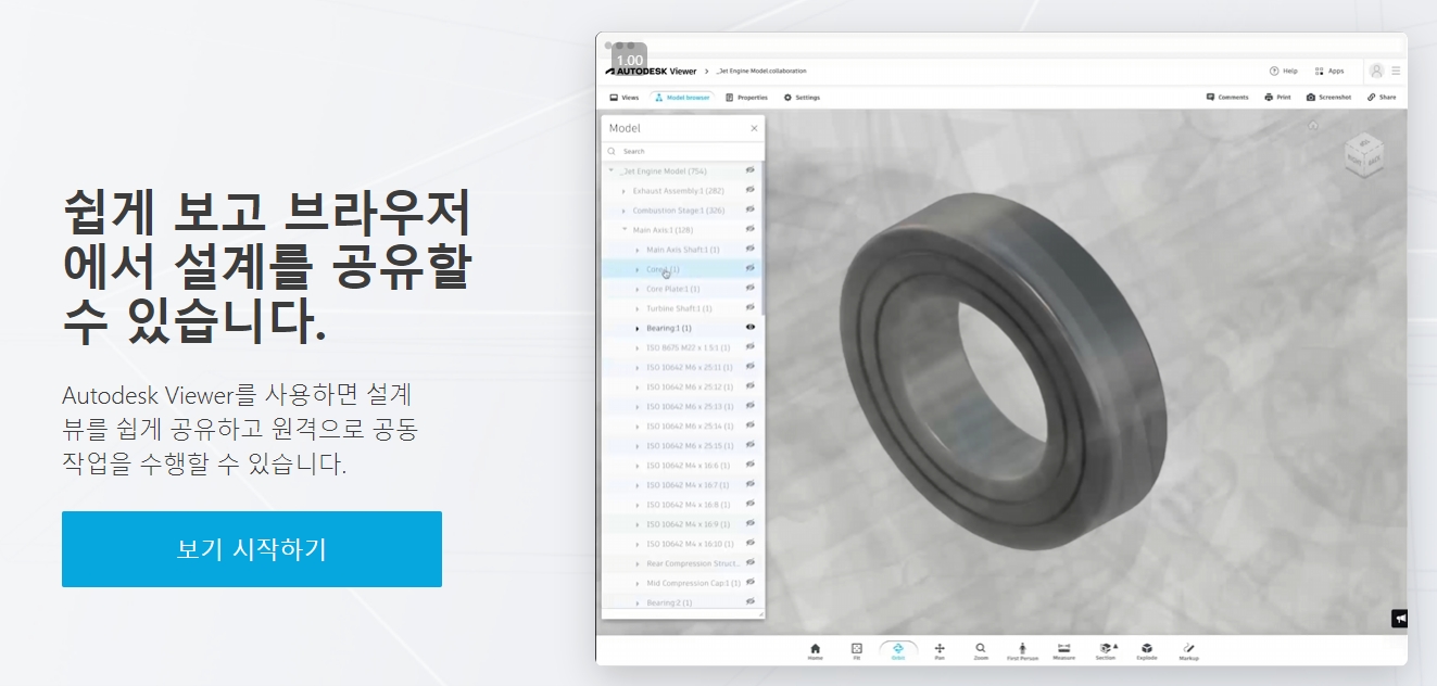 6. 이제 ‘보기 시작하기’ 버튼을 클릭하시면 뷰어 실행 단계로 넘어갑니다. 이 과정에서 오토데스크 계정으로 로그인하셔야 할 수도 있어요. 계정이 없다면 회원가입을 먼저 해주세요.