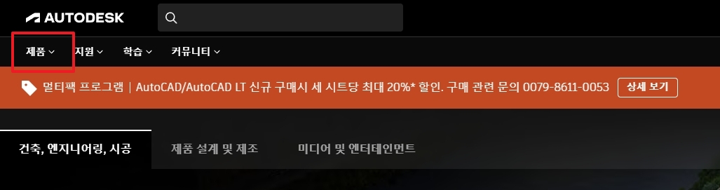 2. 상단 메뉴에서 ‘제품’ 항목을 클릭하면 다양한 소프트웨어 목록이 펼쳐집니다. 여기서 우리가 찾는 DWG 뷰어나 관련 도구들을 쉽게 탐색할 수 있어요. 목록이 꽤 많기 때문에 천천히 살펴보시는 걸 추천드려요.
