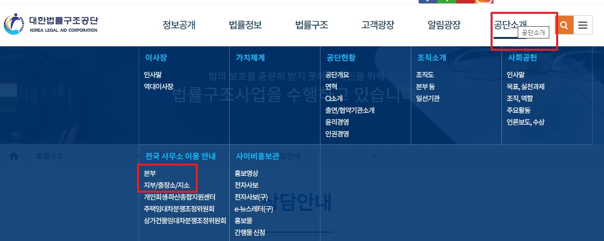 7. 대구 지역 상담소를 찾고 싶다면, 홈페이지 우측 상단 메뉴에서 ‘공단소개’를 클릭하고 ‘전국 사무소 이용 안내’를 선택한 다음 ‘지부/출장소/지소’ 항목을 살펴보세요. 한눈에 정리되어 있어서 원하는 지역을 빠르게 찾을 수 있어요.