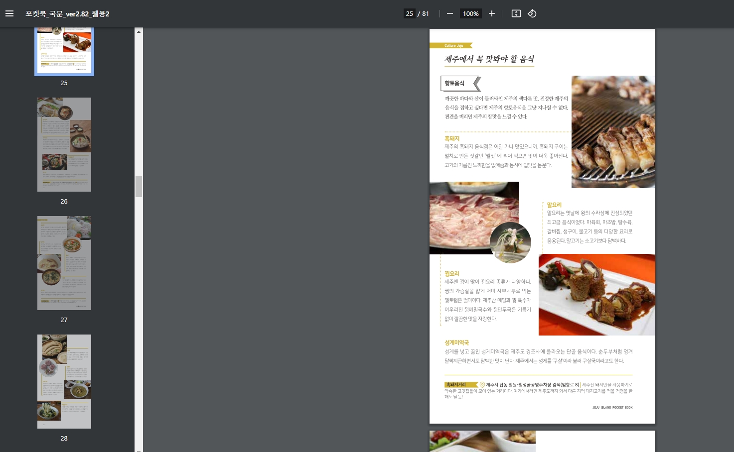 6. 포켓북은 총 61페이지로 구성되어 있는데, 이 한 권이면 제주도를 구석구석 알아볼 수 있을 만큼 알찬 정보가 들어 있습니다.