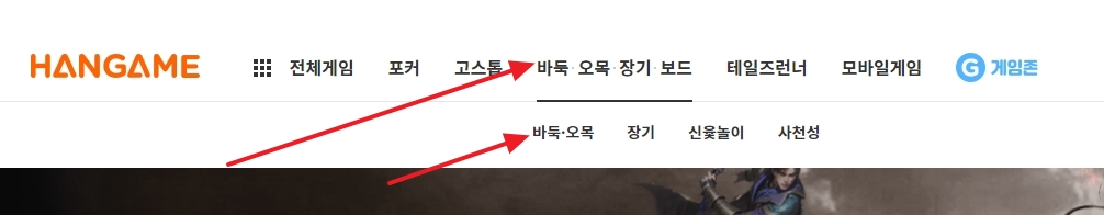 10. 상단 메뉴에서 바둑/오목/장기 같은 보드 게임 카테고리를 찾고, 그 중에서 오목을 클릭하면 바로 접속할 수 있어요.
