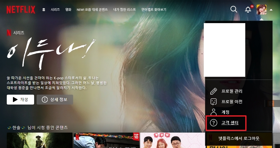 6. 좀 더 빠르게 완전 탈퇴를 원하시면 고객센터 메뉴로 들어가세요. 이건 프로필 메뉴에서 찾을 수 있어요.