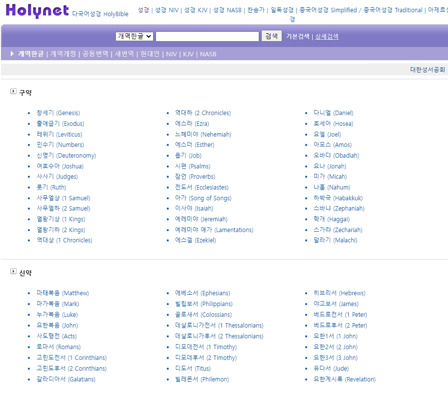 holynet에 접속하면 성경 번역본을 선택할 수 있는 메뉴가 바로 보입니다. 개역개정, 개역한글, 현대어 성경 등 다양한 버전 중 본인이 익숙한 것을 고르면 됩니다. 또한 검색 기능을 이용해 단어나 구절을 즉시 찾을 수 있어 정말 편리합니다.
