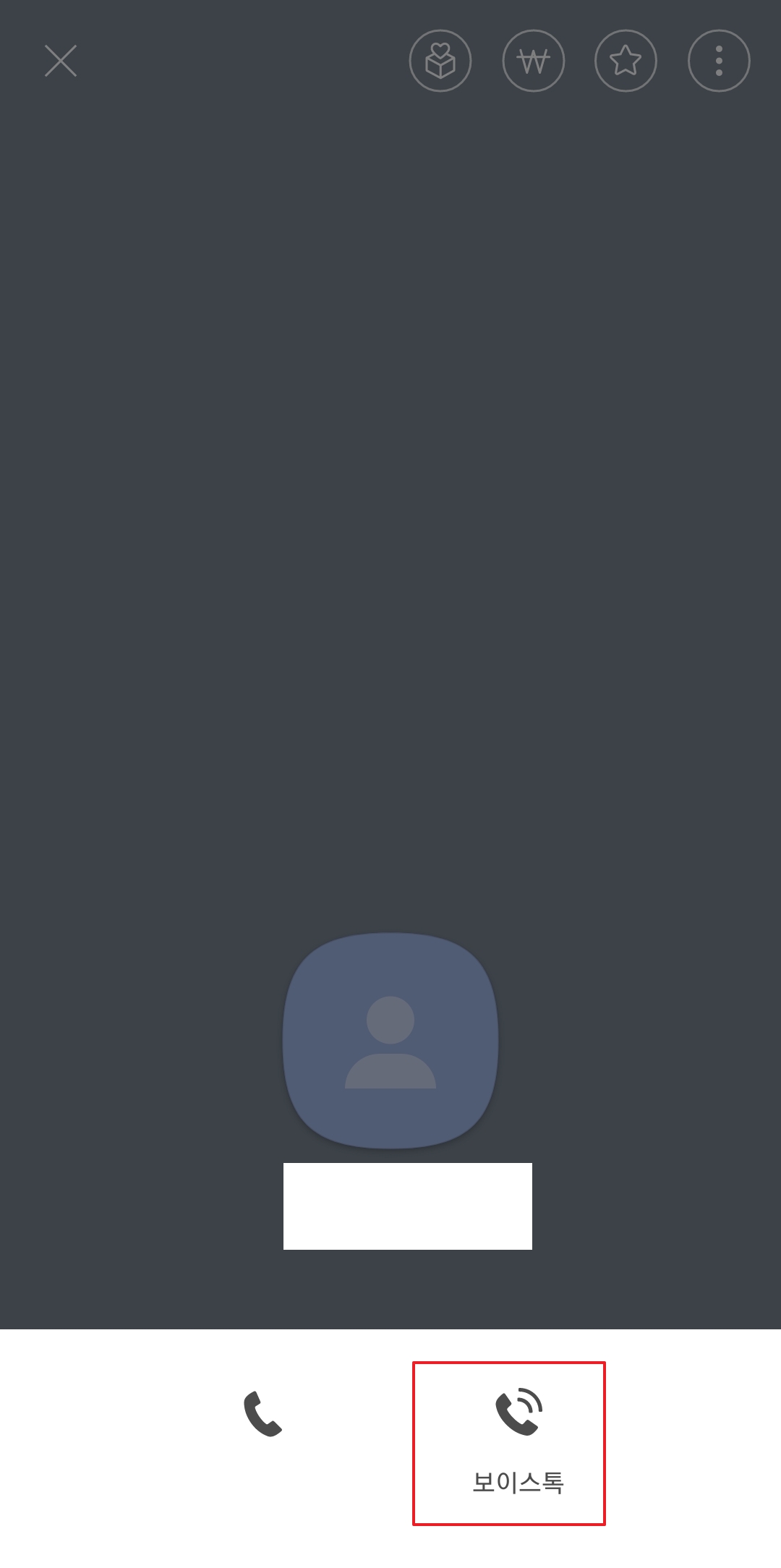 좌측 버튼은 일반 전화로 발신되는 기능이며, 우측에 위치한 '보이스톡' 버튼을 눌러야 데이터 기반의 인터넷 통화가 실행됩니다. 꼭 구분해서 선택하세요.