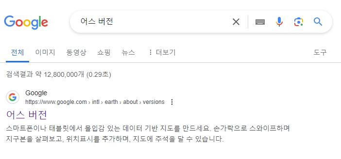 ‘어스 실행’ 버튼을 클릭하면 웹 브라우저에서 바로 Google Earth를 이용할 수 있습니다. 별도의 설치 없이 고해상도 위성지도, 3D 도시 탐험, 스트리트 뷰 체험까지 가능해 가볍게 접하고 싶은 분들에게 적합합니다.