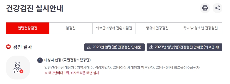 지역세대주, 직장가입자, 20세 이상 세대원 및 피부양자, 그리고 20세~64세 의료급여수급권자는 대상입니다. 비사무직은 매년, 그 외는 2년에 한 번 검진을 받습니다.