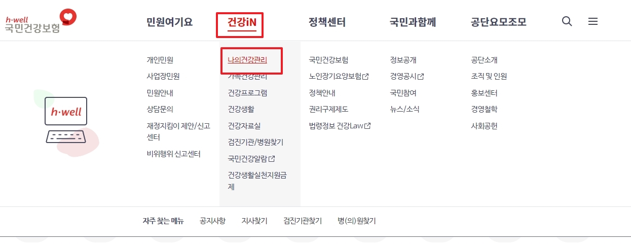 1. 국민건강공단 홈페이지 접속