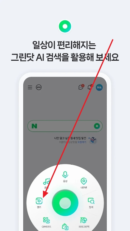 네이버 앱 실행 후 하단 동그라미 버튼을 누르면 그린닷 AI 검색 기능이 켜집니다. 그 후 렌즈 아이콘을 통해 직접 사진을 찍거나 갤러리에서 선택하면, 사진 속 꽃의 종류를 인식해 알려주는 기능을 사용할 수 있습니다. 일반 검색과 달리, 이미지 기반 인공지능 기술이 활용됩니다.
