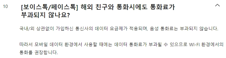 가장 정확한 정보는 공식 고객센터에서 확인할 수 있습니다. 보이스톡 및 페이스톡의 데이터 사용 기준과 요금 정책은 수시로 변동될 수 있으니 홈페이지 검색을 통해 접속해 주세요.