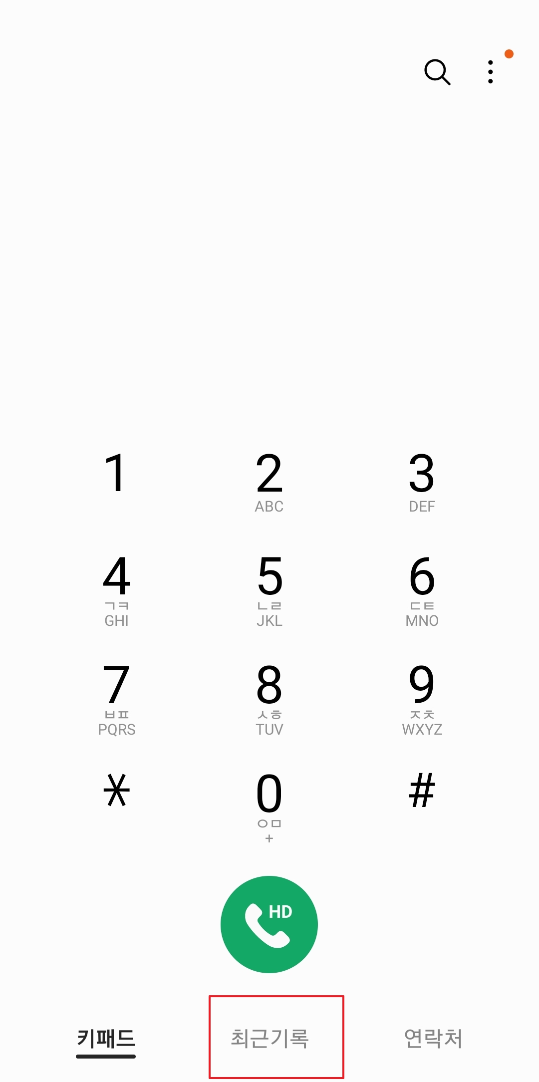 하단 메뉴에서 ‘최근 기록’을 클릭하면 통화 목록이 나타납니다. 여기서 부재중 전화만 확인하는 설정으로 넘어갈 수 있어요.