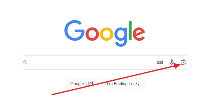 검색창 오른쪽에 있는 카메라 모양의 아이콘을 클릭합니다. 이 버튼이 바로 ‘구글 렌즈’ 기능으로 연결되는 부분입니다.