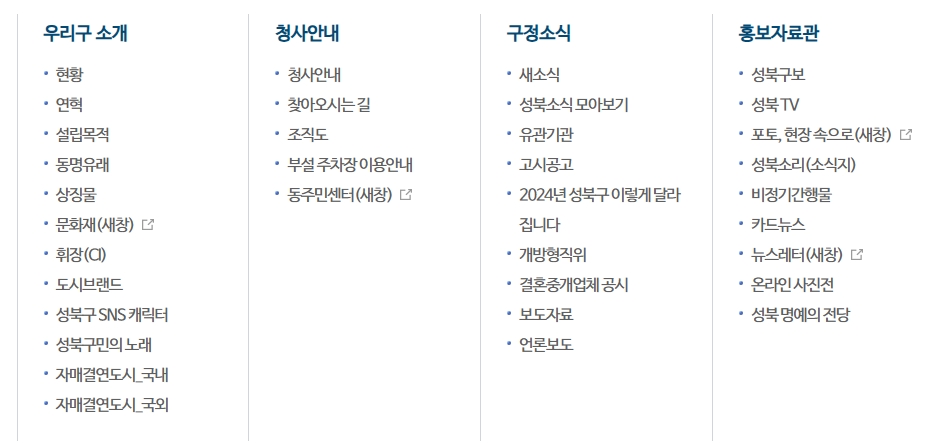 공식 성북구청 홈페이지에 접속하면 전자민원, 복지, 지역 소식 등 다양한 서비스를 확인할 수 있어요. 특히 주민등록 등·초본 발급이나 민원 신청도 이곳에서 간편하게 처리할 수 있습니다.