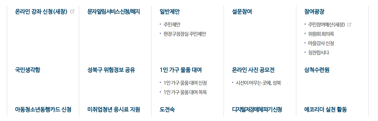 제안 접수나 1인가구 물품 대여 서비스처럼 주민 중심의 프로그램도 운영 중이에요. 이런 프로그램들은 생활 밀착형 복지 실현을 위한 성북구의 노력을 보여주는 부분입니다.