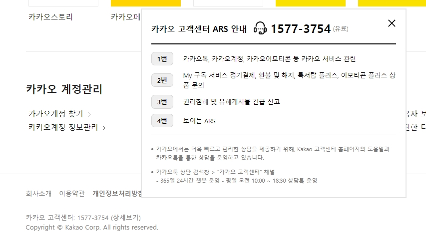 카카오톡 고객센터 전화 연결은 ARS 번호 1577-3754를 통해 이루어지며, 전화 안내에서 1번(카카오톡 서비스), 2번(정기결제·환불·해지), 3번(권리침해·긴급신고), 4번(보이는 ARS)을 선택해 원하는 상담을 받을 수 있습니다. 이 외에도 고객센터 홈페이지와 카카오톡 채널에서 챗봇 및 평일 상담톡을 이용할 수 있습니다.
