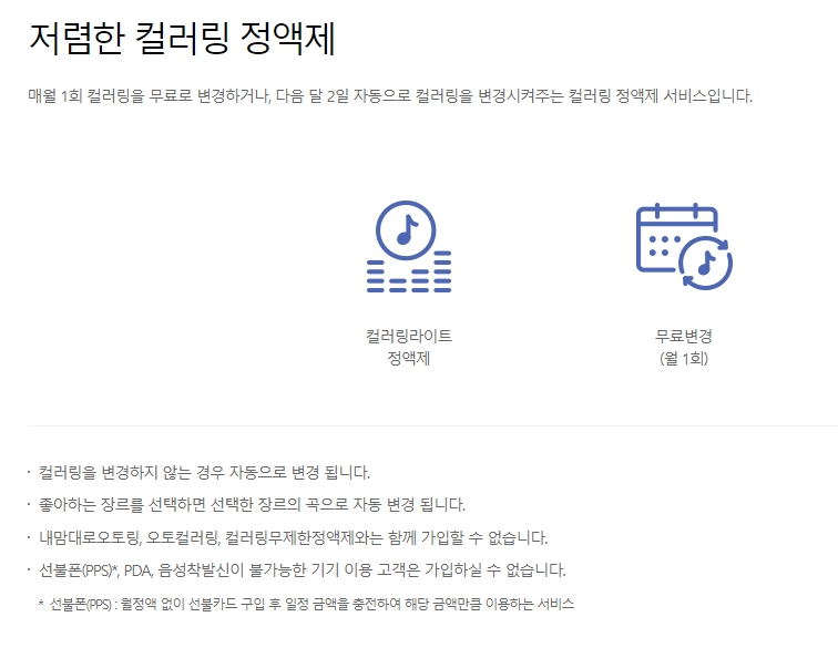 SK 컬러링 설정은 T월드 홈페이지에 접속해 ‘컬러링’을 검색한 뒤, 부가서비스 목록을 낮은 가격순으로 정렬해 원하는 곡을 선택하고 결제하면 바로 변경할 수 있습니다. 가장 저렴한 요금은 월 550원이며, 월 1회 자동 장르 변경이나 나만의 음성 멘트 설정도 이용 가능해요.