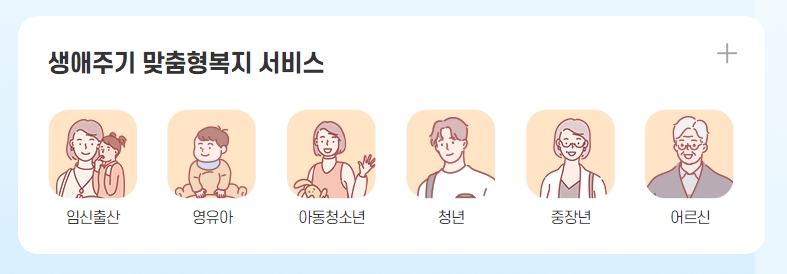 5. 복지 정보 메뉴에서는 생애주기별 복지 서비스를 정리해두어 누구든지 본인에게 필요한 복지 혜택을 찾기 쉽게 되어 있어요. 임신부터 노년기까지 구체적인 지원 내용이 안내되어 있어 실생활에 많은 도움이 됩니다.