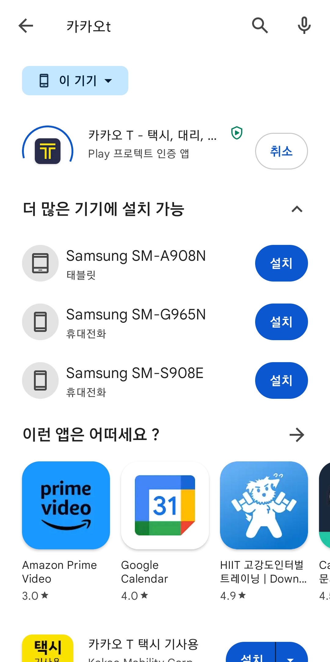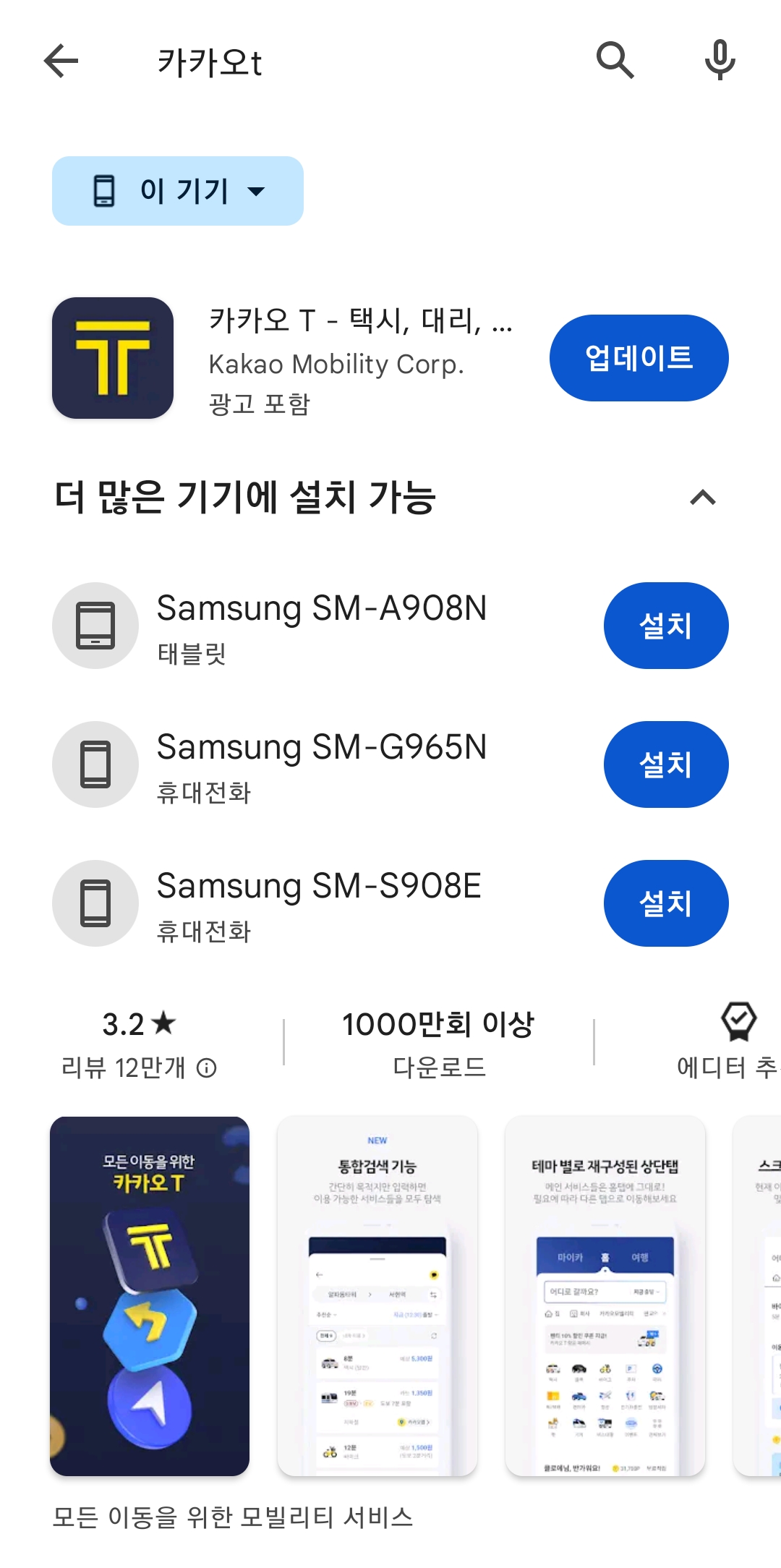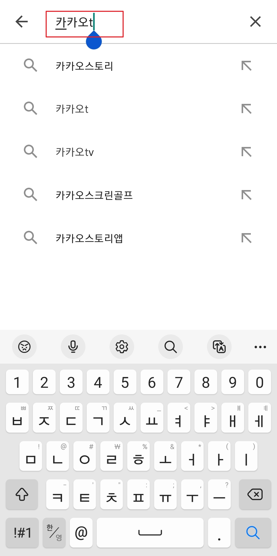 스토어에 들어가면 검색창이 보일 거예요. 거기에서 '카카오T'라고 입력하고 검색을 누르면 됩니다. 비슷한 이름들이 많이 뜰 수 있는데, 아이콘이 하얀 배경에 파란색 T로 된 앱을 찾으면 됩니다.