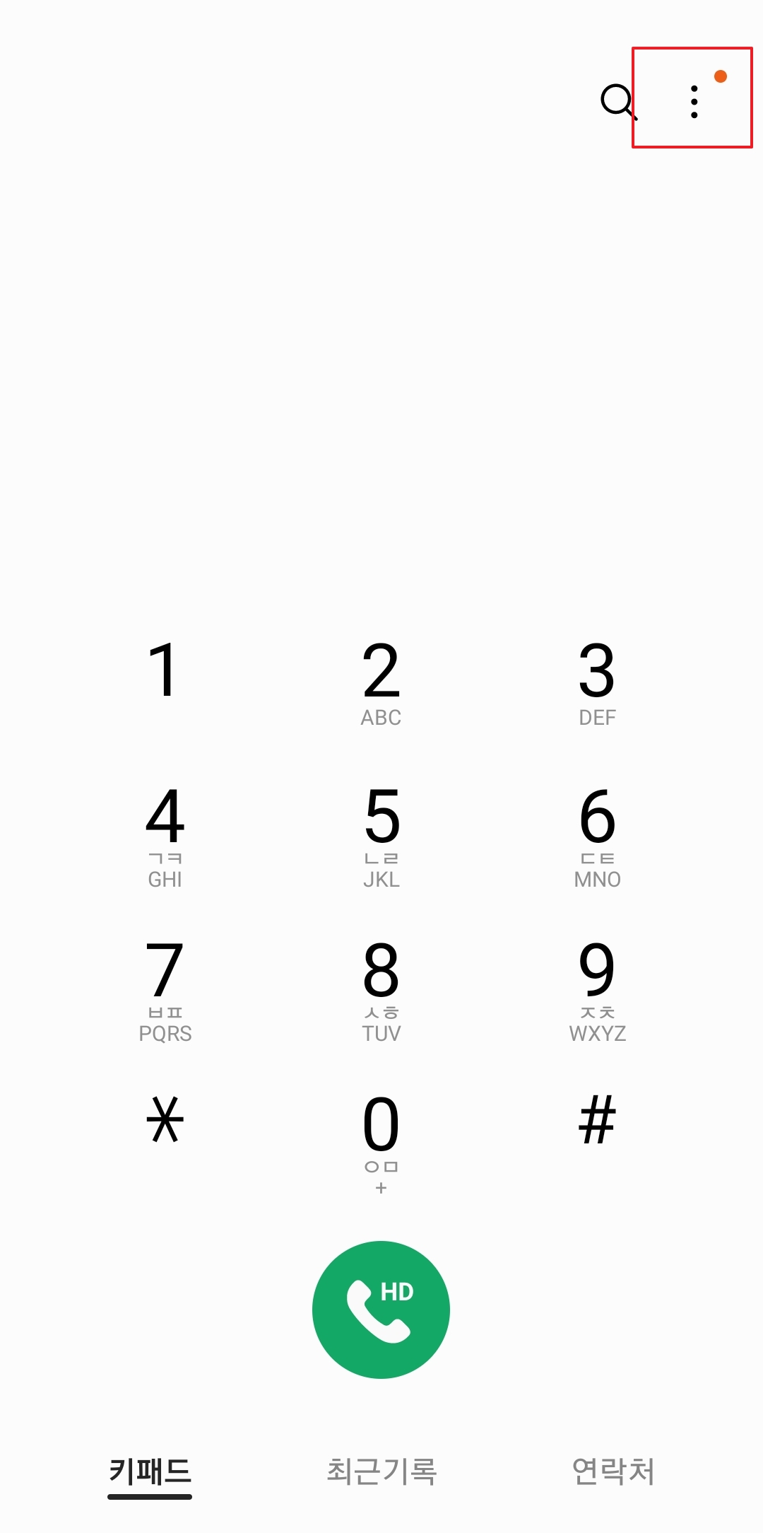1. 전화 앱을 실행한 뒤 화면 하단의 키패드 아이콘을 눌러 키패드 화면으로 이동합니다. 이후 우측 상단의 점 세 개 메뉴를 탭해 다양한 통화 관련 설정에 접근할 수 있으며, 이 단계에서 차단 옵션을 찾기 위한 준비를 마칠 수 있습니다.