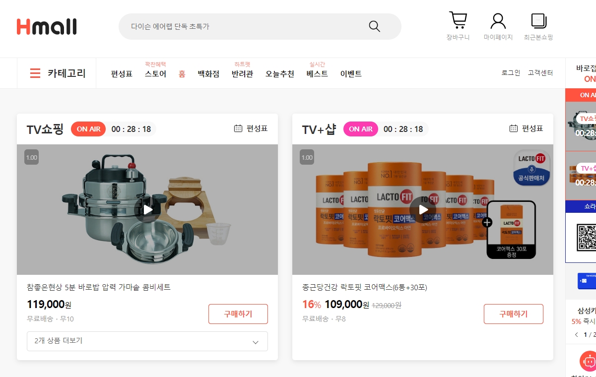 현대홈쇼핑 바로가기 홈페이지 (www.hmall.com)