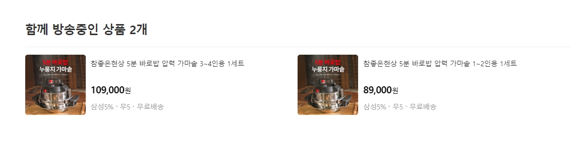 추천 상품 영역에는 현재 방송 중인 상품과 관련된 다양한 아이템이 나열되어 고객이 함께 살펴볼 만한 상품을 쉽게 발견할 수 있습니다. 각 상품 이미지를 터치하면 상세 페이지로 바로 이동하여 추가 정보를 확인할 수 있어 관심 있는 상품을 비교하고 추가 구매를 고려하기에 편리합니다.