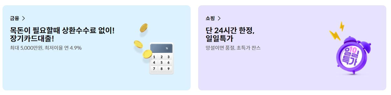 가끔씩 갑자기 돈이 필요할 때가 있잖아요. 그럴 때 삼성카드에서 최대 5,000만원까지 자금을 마련할 수 있는 서비스가 있어요. 좋은 점은 나중에 갚을 때 수수료가 따로 붙지 않고, 이자도 최저 연 4.9%부터 시작해서 부담이 덜하다는 거예요. 그리고 쇼핑을 좋아하신다면 꼭 확인해야 할 게 있는데, 딱 하루, 24시간 동안만 특별한 가격에 물건을 파는 '일일특가' 코너도 있답니다.