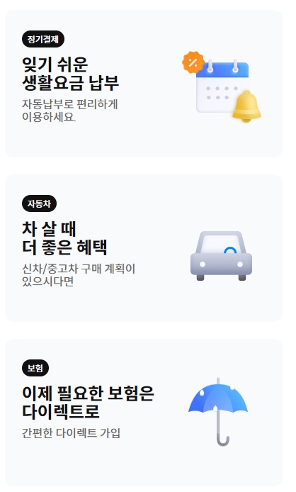 그래서 카드 관련해서 궁금한 게 생기면 여기부터 찾아보는 게 좋더라고요. 모든 기능이 다 모여 있어서 여기저기 헤맬 필요가 전혀 없답니다.