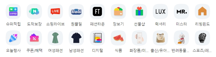상단 메뉴 바로 아래에는 여러가지 그림 아이콘들이 옹기종기 모여 있어요. 이 아이콘들은 각각 특별한 쇼핑 코너로 바로 연결되는 문이라고 생각하면 쉽습니다. 예를 들어 '쇼핑라이브' 아이콘을 누르면 판매자들이 직접 방송을 하면서 물건을 파는 걸 구경할 수 있고, '원쁠딜'을 누르면 하나 사면 하나 더 주는 상품들만 모아서 볼 수 있답니다. 그림만 보고도 어떤 곳인지 짐작할 수 있어서 편리해요.
