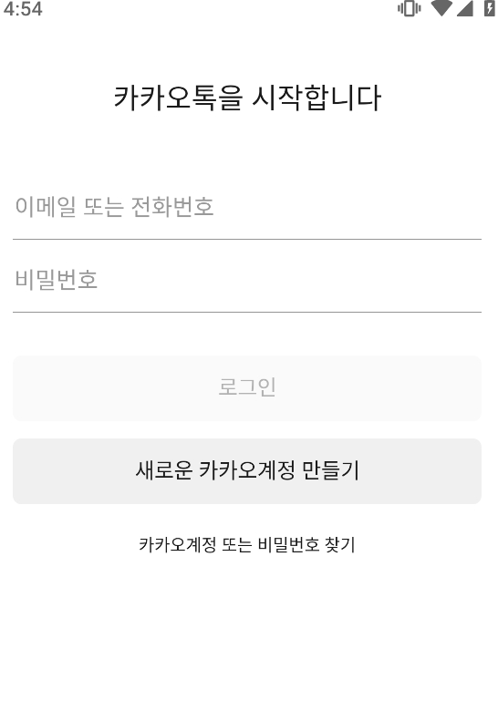 모든 준비가 끝나면 로그인 화면이 나타납니다. 기존에 쓰던 계정이 있다면 바로 로그인하면 되고, 처음이라면 '새로운 카카오계정 만들기'를 눌러서 계정을 만들어야 해요. 전화번호 인증 같은 간단한 절차만 거치면 되니까 어렵지 않게 만들 수 있습니다. 이제부터 친구들과 즐겁게 대화하면 됩니다.