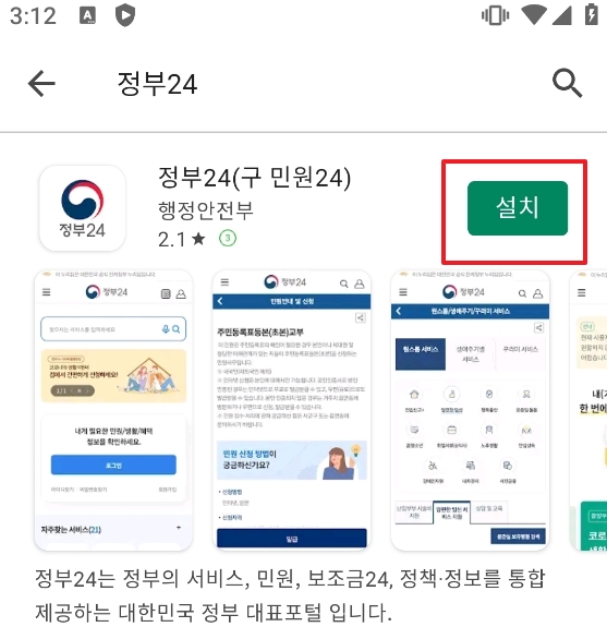 정부24 안드로이드 앱 설치