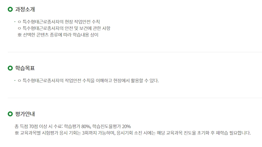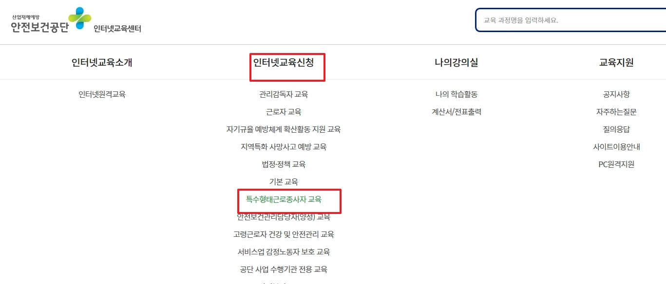 특수형태 근로종사자 안전교육 인터넷 홈페이지 바로가기
