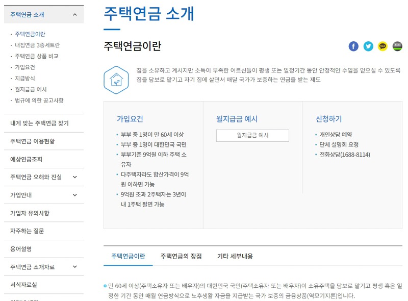 또한, 주거용 오피스텔은 현재는 가입이 안되지만, 앞으로는 가입이 가능하도록 제도를 바꿀 계획이라고 하니 오피스텔을 가진 분들은 희소식이 될 수 있겠습니다. 이처럼 주택연금에 대한 모든 궁금증은 한국주택금융공사 홈페이지에서 대부분 해결할 수 있습니다.