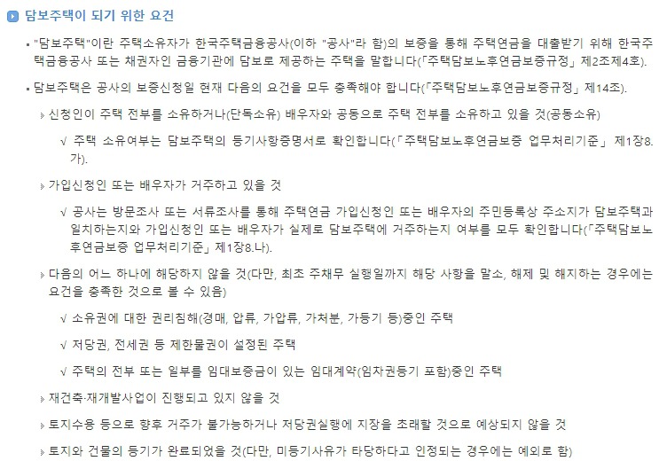 지금까지 생활법령정보 사이트에서 알아봤는데, 조금 더 보기 편하게 정리된 정보를 원한다면 주택연금을 직접 관리하는 기관의 홈페이지를 방문하는 것이 좋습니다.