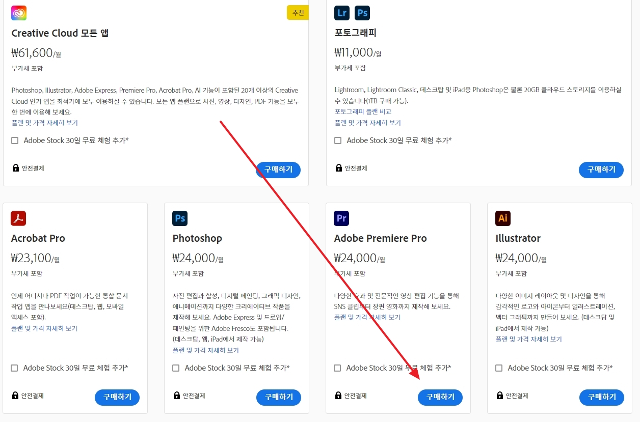 Premiere Pro는 무료 체험도 가능하며, 한 달 사용료는 약 24,000원입니다. 연간 구독이나 자동 결제를 설정하면 비용이 더 저렴해질 수 있습니다.