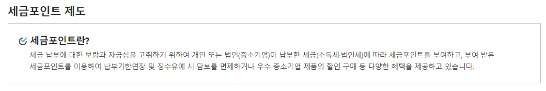 새롭게 열린 페이지에서는 세금 포인트 제도가 무엇인지에 대해 아주 자세하게 설명해주고 있습니다. 어떤 사람들이 포인트를 받을 수 있는지, 포인트는 어떻게 계산되는지, 그리고 가장 중요한 어떻게 사용할 수 있는지에 대한 내용이 알기 쉽게 정리되어 있습니다. 실제로 포인트를 사용하기 전에 이 내용을 한번 꼼꼼하게 읽어보면 큰 도움이 됩니다. 내가 받을 수 있는 혜택을 놓치지 않으려면 꼭 확인해보는 것이 좋습니다.