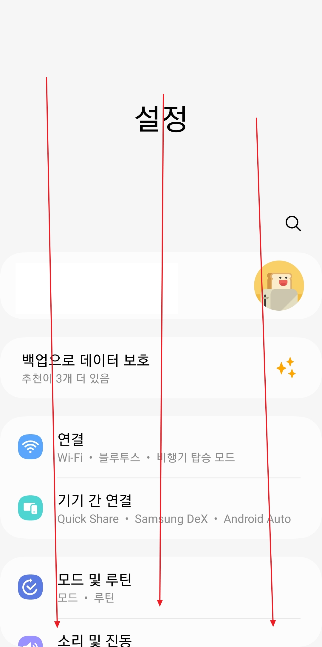 이곳에서는 배경화면뿐만 아니라 소리, 디스플레이, 연결 등 스마트폰의 전반적인 기능을 모두 제어할 수 있으니, 다른 기능들도 한번 살펴보시는 것을 추천해 드립니다.