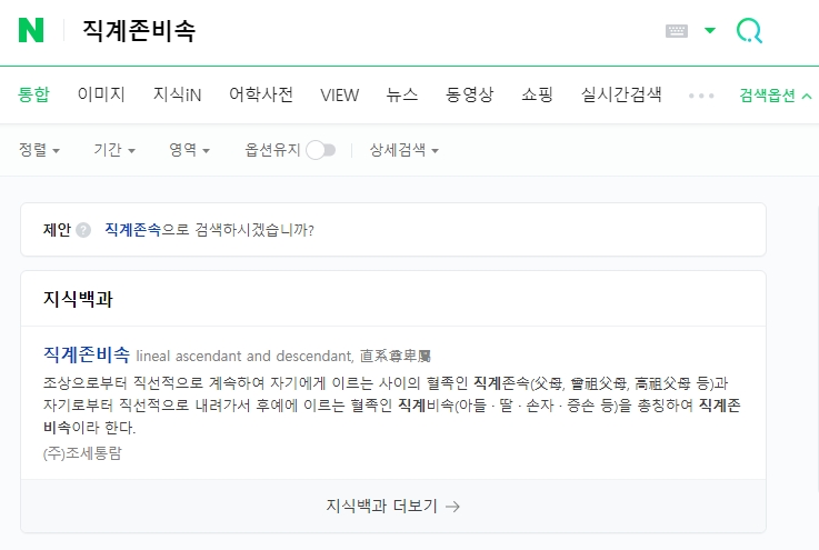 지식백과나 사전적 정의를 찾아보면 직계존비속의 개념이 명확하게 설명되어 있습니다. 조상으로부터 직선적으로 나에게 이어지는 혈족인 직계존속과, 나로부터 직선적으로 내려가는 후손인 직계비속을 합쳐 부르는 말이라는 것을 알 수 있습니다.