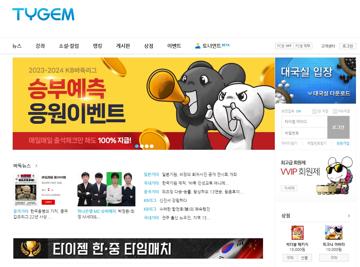 타이젬 바둑 홈페이지 (www.tygem.com)